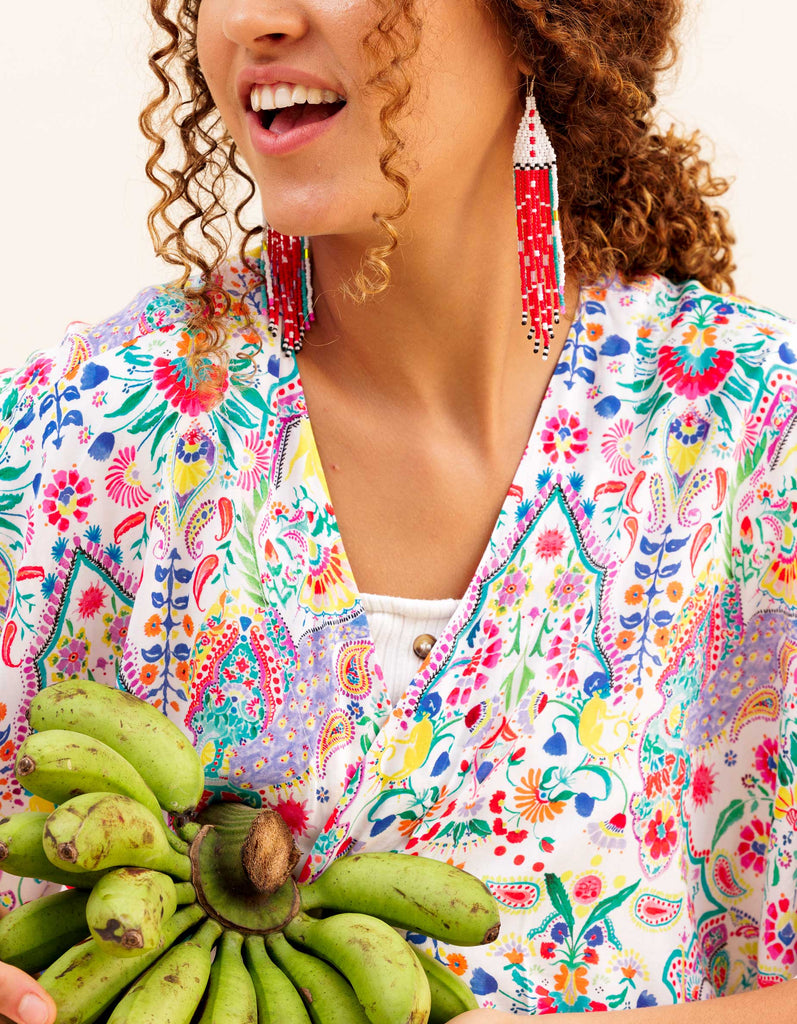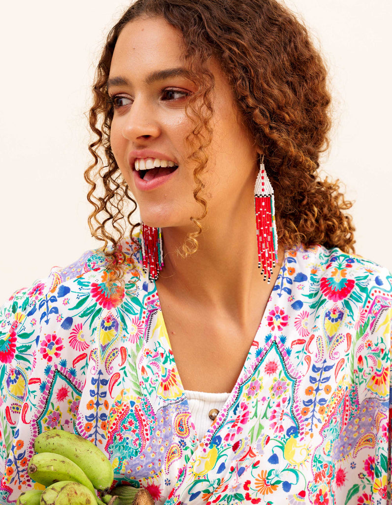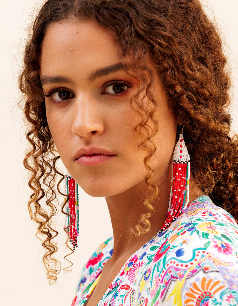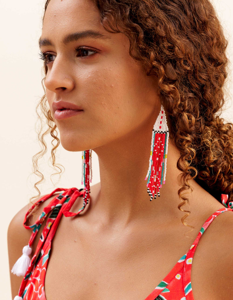 Get ready to turn heads with these one-of-a-kind earrings, made with love by Ami, our amazing Balinese artisan. Each pair takes hours of hand-beading to create, but their lightweight design makes them a breeze to wear.