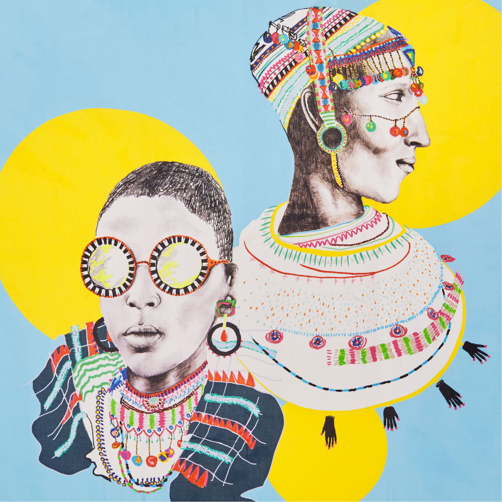 Ayo is an open door to a deeply moving encounter with two women from the Masai and Samburu tribes in Kenya. The sun is in the background, symbolizing their philosophy of happiness in the form of circles.
