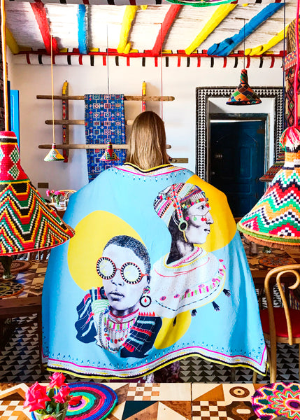 By wrapping yourself in this sarong, I invite you to connect with this philosophy of circular happiness. May you feel the warmth of the sun illuminating these two exceptional women, and may this sensation guide you into a contemplative, meditative state. May this sarong become for you much more than a simple textile, but a window onto the soul of these two tribes, an invitation to celebrate the beauty of life and to cherish our cultural heritage that links us all, beyond borders and differences.