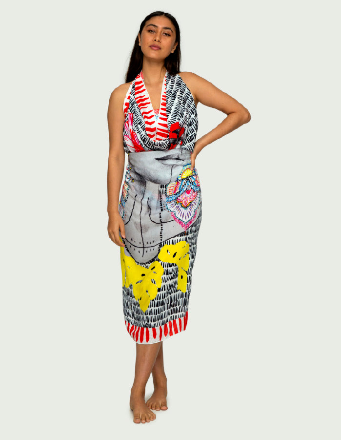 Our sarong is much more than a simple accessory, it's a truly wearable work of art that transports you to a mystical elsewhere.