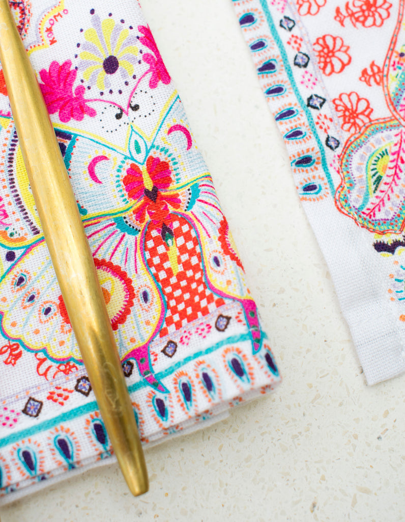 Your table is adorned with the most beautiful and colorful napkins of the season! These napkins can also be used as a place mat for the greatest happiness of your mismatched plates hunted down at flea markets!