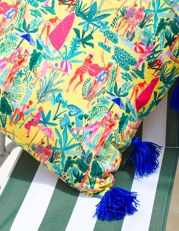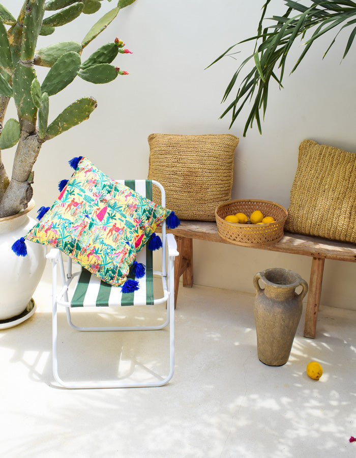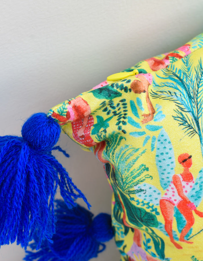 Spruce up your best item in a snap with our pillow case. Full of lively shades, its super cozy material surrounds you in pure, snug comfort. The handmade indigo wool tassels bring a pop of one-of-a-kind artisanal charm.