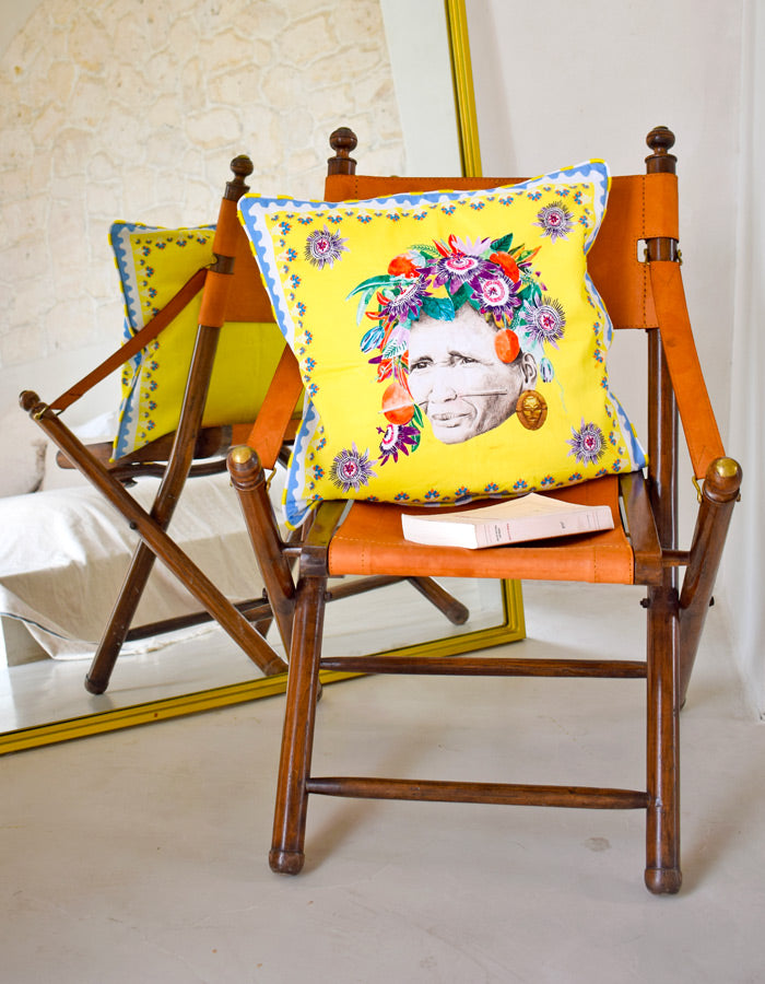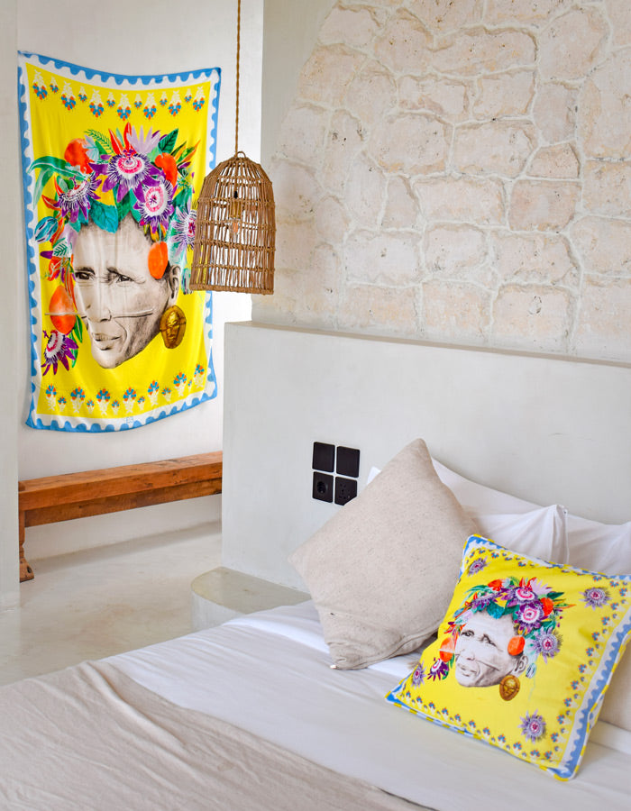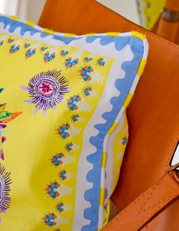 Elevate your decor to new heights with our pillow case. Drenched in lavish yellow hues, its velvety fabric wraps you in ultimate coziness. Artisanal wool piping adds a dash of personality to this daring statement piece.