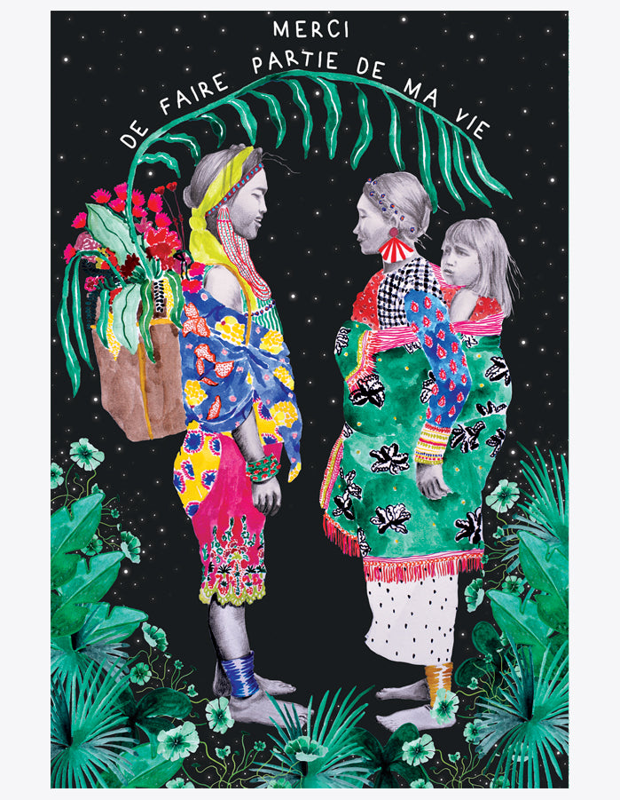 Mystical atmosphere with half-Vietnamese, half-Japanese motherhood, dressed in embroidered, flowing fabrics. Set sail to a colorful past where the watery and flowery world coexist.