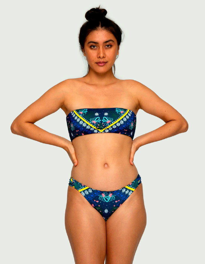 Rajani Bandeau Top is perfect for a day spent soaking up the sun. Opting to forgo straps, this design features fully lined support for extra comfort and endurance, while the minimal coverage allows for maximum tanning. Finally, Rajani Bandeau Top boasts adjustable knot at the back and boning along side-seam adding both extra comfort and adjustability.