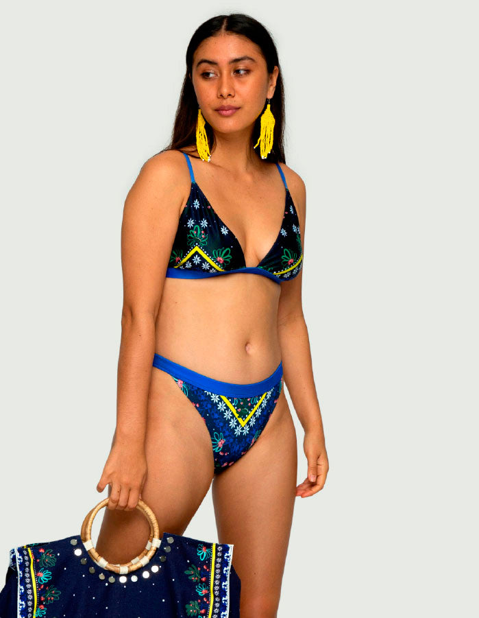 Rajani Fixed Triangle Bikini Top features thin adjustable straps. an elastic band ensures a perfect fit. This bikini top shows a lovely square neckline at the back. The small breasts can add a removable cup thanks to the opening inside. Back is adjustable up to 3 notches. There is also a one-piece swimsuit.