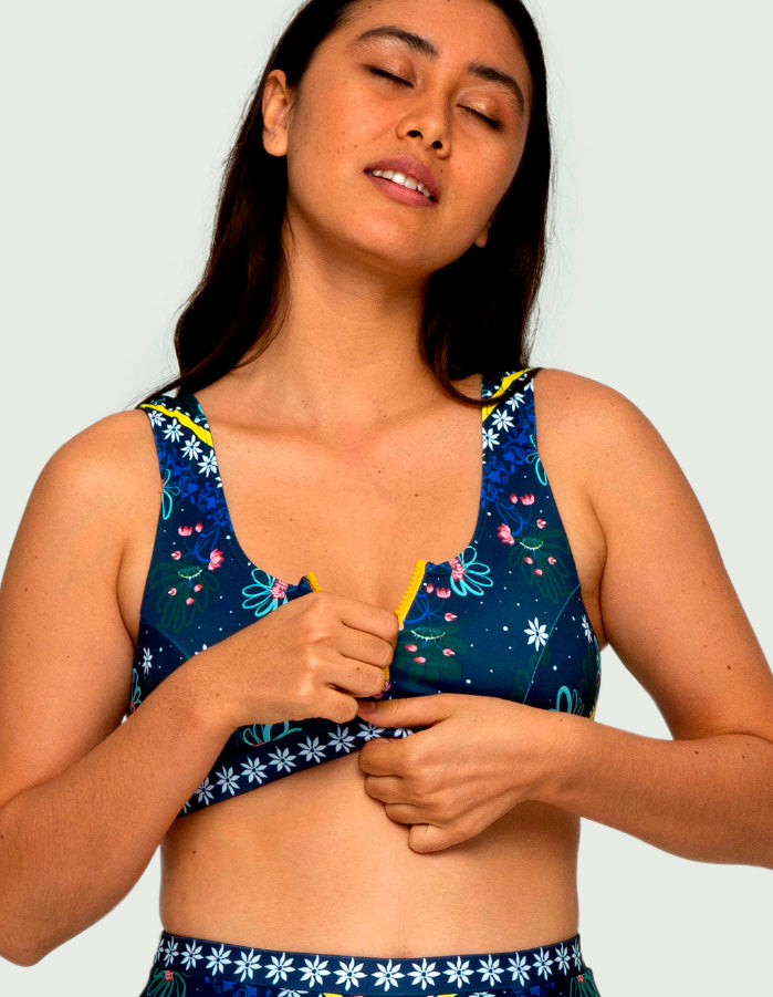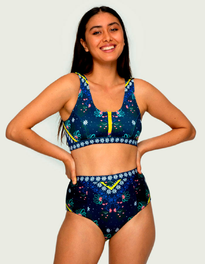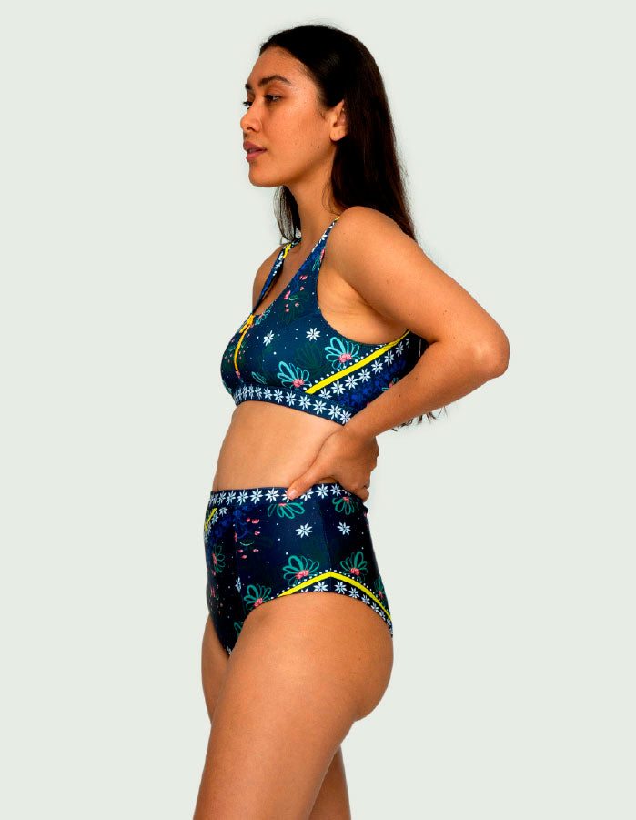Rajani Zip Front Top looks charming half-zipped by the pool, or all the way zipped for swimming, running on the beach, surfing or even for yoga. We always complain that our tops are coming down when we do water activities, so we made something that stays on while still looking super hot! This zipped top is made for all kinds of bust thanks to excellent support and is lightly push-up.