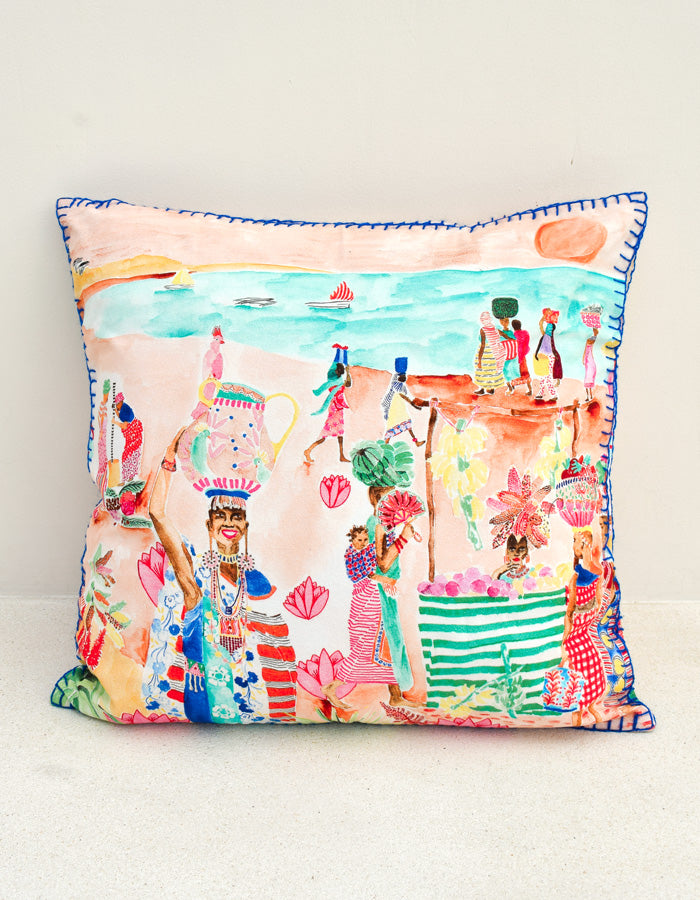 Sink into colorful dreams with this hand-embroidered pillow case! Its bright patterns and terra cotta color create a golden atmosphere, inspiring a sense of adventure on the shores of Zanzibar. Fly away and let your imagination soar - a perfect wind-down at the end of the day.