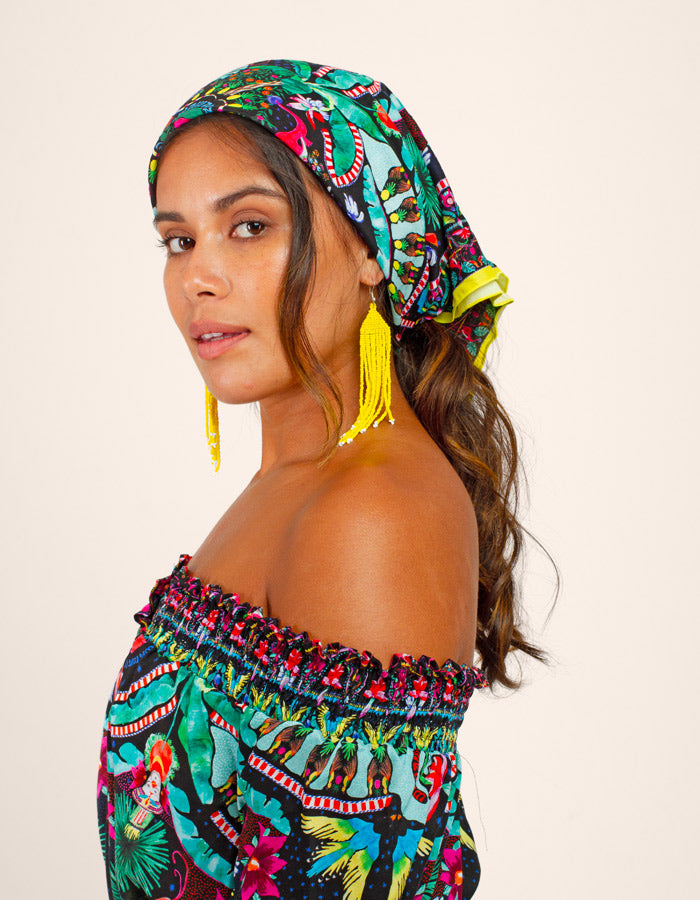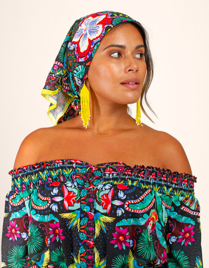 Enhance any look with this silky square scarf. Perfect for styling your hair or adding a dash of sophistication around your neck. Have fun and set the tone with this versatile accessory !